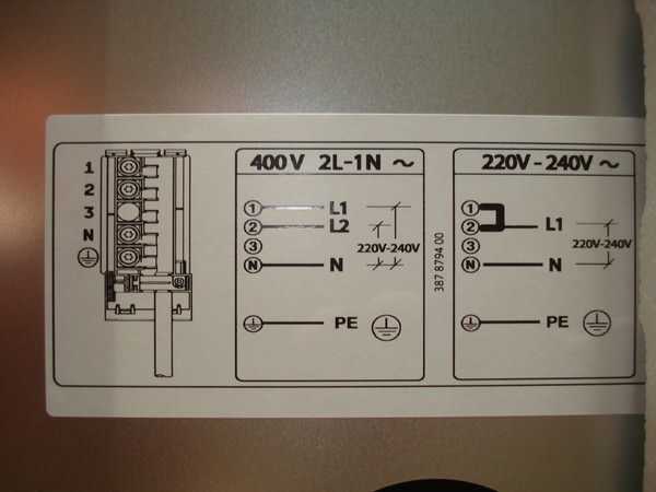 - Нижняя схема 3N— трехфазное подключение на 380 Вольт. Снимаются перемычки между 1, 2 и 3 контактами. На них же подключается 3 разноименные фазы- L1, L2, L3. Последовательность не имеет значения. На 5 контакт все так же садится ноль. Понадобится гибкий пяти жильный кабель ПВС 5х4 мм².