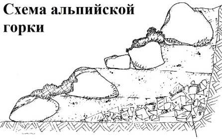 Внимание! Не нужно придерживаться каких-либо схем или рисунков при создании альпинария. Легкая небрежность сделает альпийскую горку наиболее приближенной к натуральному дикому виду.