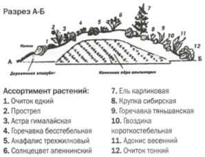 Важно! Если альпинарий задуман выше метра, нужно дополнительное устройство в виде ядра.