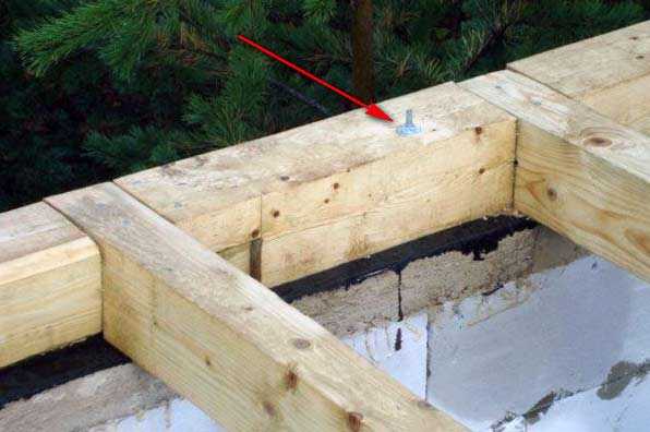 - Изготовьте нижнюю обвязку, для этого возьмите бруски сечением 15х15 см. и установите их на фундаменте, соединив между собой специальными металлическими пластинами и уголками. Существует и другой способ соединения брусков, с помощью выпиливания на их концах шипов, пазов и последующего скрепления шурупами или гвоздями. Делая обвязку, не забудьте подложить под бруски гидроизоляцию.