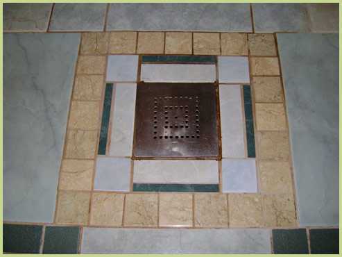Если вы хотите сделать пол из керамогранита или кафельной плитки, то они просто укладываются на первый уровень под уклоном к сливному отверстию.