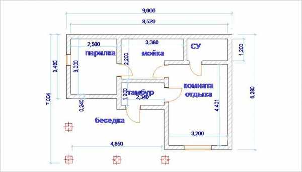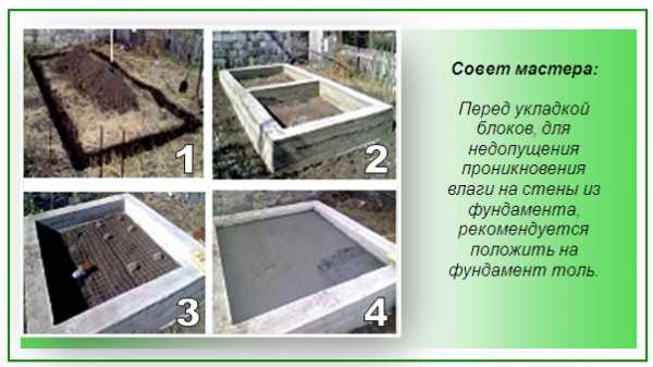 Оптимальным вариантом основания для парной из блоков является ленточный фундамент.
