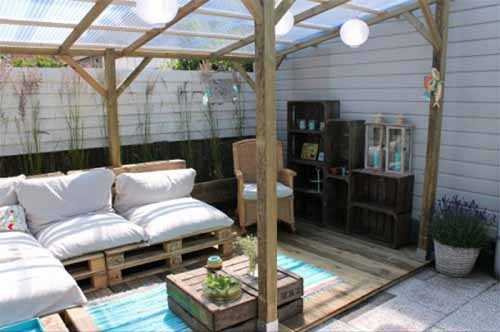 Мягкие сидения устроены просто на деревянных поддонах. Цвет крыши можно подобрать темнее, что бы была тень.