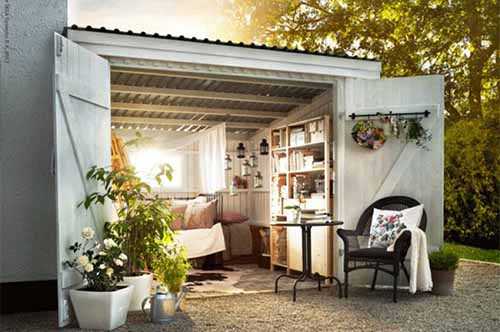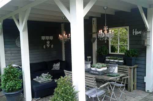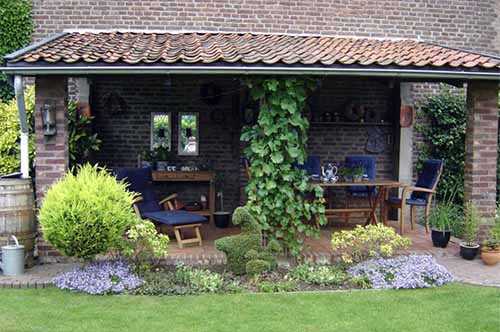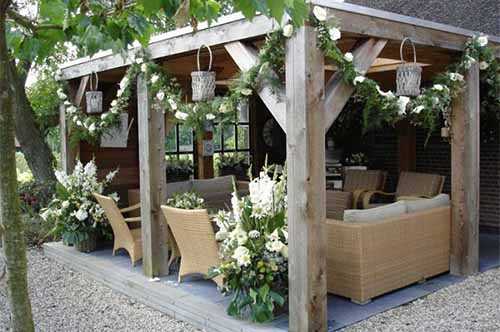Каким бы не было строение, но цветы и плетёная мебель сделают из неё почти дворец.