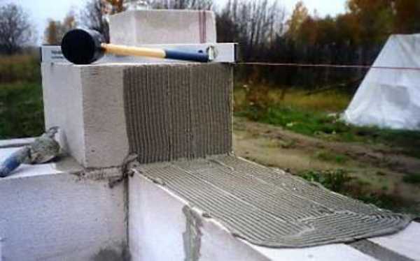 Клей предпочтительнее обычного цементного раствора по той причине, что в случае использования специального состава готовые стены практически не будут иметь «мостиков холода». Это очень хорошо отразится на эксплуатационных характеристиках готовой бани.