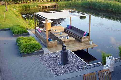 В такой садовой беседке можно часами сидеть и смотреть на воду, она точно выдернет Вас из городской суеты.