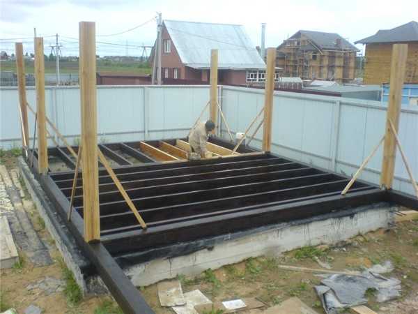 Первый шаг. Установите опорный брус и балки перекрытия.