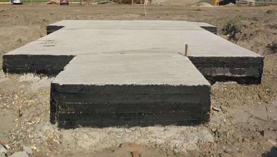 Залитый фундамент оставьте на 3-5 недель для полного застывания. На застывший фундамент уложите гидроизоляцию (обычно используется рубероид) и приступайте к строительству стен.