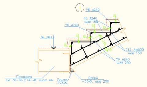 Расстояние между слоями арматуры — 150 мм, а шаг в любую сторону — 150‒200. Дополнительно необходимо очертить контуры каждой ступени. Минимальное расстояние до опалубки 40‒50 мм.