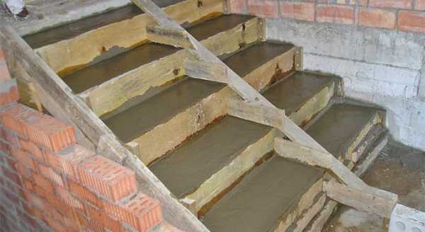 Далее следует непосредственная заливка ступеней, уплотнение бетона с помощью вибратора. После схватывания бетона, а этот процесс длится около 72 часов, опалубку можно снимать.