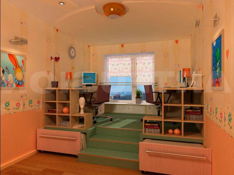 ΠΠΈΠ΄ Π΄Π΅ΡΡΠΊΠΎΠΉ Π·Π°Π²ΠΈΡΠΈΡ ΠΎΡ ΡΠ°Π·ΠΌΠ΅ΡΠΎΠ² ΠΆΠΈΠ»ΠΎΠΉ ΠΏΠ»ΠΎΡΠ°Π΄ΠΈ, Π° ΡΠ°ΠΊΠΆΠ΅ ΡΠ°Π·ΡΠΌΠ½ΠΎΠ³ΠΎ Π·ΠΎΠ½ΠΈΡΠΎΠ²Π°Π½ΠΈΡ ΠΏΡΠΎΡΡΡΠ°Π½ΡΡΠ²Π°. ΠΡΠ΄Π΅Π»Π΅Π½ΠΈΠ΅ Π·ΠΎΠ½ Π΄Π»Ρ ΠΈΠ³Ρ, ΠΎΡΠ΄ΡΡ Π°, ΡΠ°Π±ΠΎΡΠ΅Π³ΠΎ ΠΈ ΡΠΏΠ°Π»ΡΠ½ΠΎΠ³ΠΎ ΠΌΠ΅ΡΡΠ° ΠΌΠΎΠΆΠ½ΠΎ Π΄Π΅Π»Π°ΡΡ Ρ ΠΏΠΎΠΌΠΎΡΡΡ ΠΏΠ΅ΡΠ΅Π³ΠΎΡΠΎΠ΄ΠΎΠΊ, ΠΏΡΠ΅Π΄ΠΌΠ΅ΡΠΎΠ² ΠΌΠ΅Π±Π΅Π»ΠΈ ΠΈΠ»ΠΈ ΠΏΡΠ°Π²ΠΈΠ»ΡΠ½ΠΎΠΉ ΡΡ Π΅ΠΌΡ ΠΎΡΠ²Π΅ΡΠ΅Π½ΠΈΡ.
