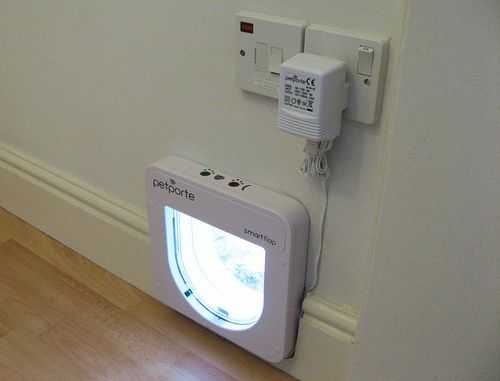 Еще одно дополнение – специальный датчик, который не позволит чужой кошке воспользоваться дверцей. Датчик уловляет сигнал чипа, вмонтированного в ошейник, и не пропускает чужих животных.