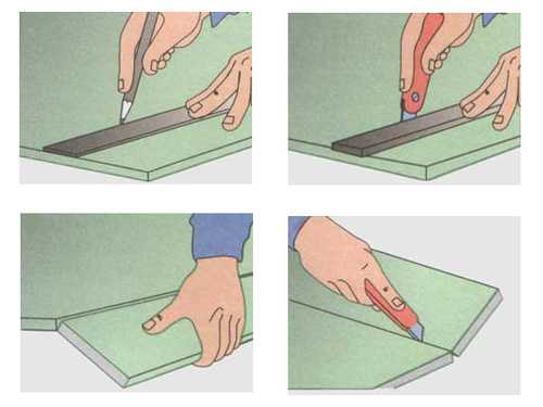 ΠΠΎΡΠ»Π΅ ΠΌΠΎΠ½ΡΠ°ΠΆΠ° ΠΊΠ°ΡΠΊΠ°ΡΠ° Π½Π΅ΠΎΠ±Ρ ΠΎΠ΄ΠΈΠΌΠΎ ΡΠ°Π·ΡΠ΅Π·Π°ΡΡ Π³ΠΈΠΏΡΠΎΠΊΠ°ΡΡΠΎΠ½Π½ΡΠΉ Π»ΠΈΡΡ ΠΏΠΎ ΡΡΠ΅Π±ΡΠ΅ΠΌΡΠΌ ΡΠ°Π·ΠΌΠ΅ΡΠ°ΠΌ. ΠΠ»Ρ ΡΡΠΎΠ³ΠΎ ΡΡΠ°ΡΠ΅Π»ΡΠ½ΠΎ ΠΈΠ·ΠΌΠ΅ΡΡΡΡΡΡ Π³Π°Π±Π°ΡΠΈΡΠ½ΡΠ΅ ΡΠ°Π·ΠΌΠ΅ΡΡ Π΄Π²Π΅ΡΠ½ΠΎΠ³ΠΎ ΠΎΡΠΊΠΎΡΠ°, Π½Π° Π»ΠΈΡΡΠ΅ Π³ΠΈΠΏΡΠΎΠΊΠ°ΡΡΠΎΠ½Π° ΠΏΠΎ Π½Π°Π½Π΅ΡΠ΅Π½Π½ΡΠΌ ΡΠ°Π·ΠΌΠ΅ΡΠ°ΠΌ Π΄Π΅Π»Π°Π΅ΡΡΡ ΡΠ°Π·ΡΠ΅Π· ΡΡΡΠΎΠΈΡΠ΅Π»ΡΠ½ΡΠΌ Π½ΠΎΠΆΠΎΠΌ, Π΄Π°Π»Π΅Π΅ Π½Π° ΡΠΎΠ²Π½ΠΎΠΉ ΠΏΠΎΠ²Π΅ΡΡ Π½ΠΎΡΡΠΈ ΠΏΠΎ ΡΡΠΎΠΌΡ ΡΠ°Π·ΠΌΠ΅ΡΡ ΠΎΡΠ»Π°ΠΌΡΠ²Π°Π΅ΡΡΡ Π»ΠΈΡΡ. ΠΡΠΈ ΡΡΠΎΠΌ Π·Π°ΠΌΠ΅ΡΡ Π΄ΠΎΠ»ΠΆΠ½Ρ ΡΡΠΈΡΡΠ²Π°ΡΡ Π±ΡΠ΄ΡΡΠΈΠ΅ ΡΡΡΠΊΠΈ Π·Π°Π³ΠΎΡΠΎΠ²ΠΎΠΊ Π² Π²Π΅ΡΡ Π½ΠΈΡ ΡΠ³Π»Π°Ρ ΠΎΡΠΊΠΎΡΠ°. ΠΡΠ΅Π³ΠΎ Π²ΡΡΠ΅Π·Π°ΡΡ 3 Π·Π°Π³ΠΎΡΠΎΠ²ΠΊΠΈ.