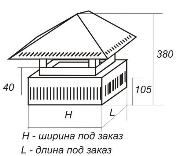 Дымник с шатровой крышей представляет собой пирамидку, состоящую из четырех одинаковых равнобедренных треугольников, его несложно сделать своими руками. Крутизна скатов крыши зависит от размера основания треугольников — чем они меньше, тем круче получатся скаты.