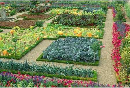 Фото 7. Широкие дорожки и вечнозеленые стриженые бордюры вокруг овощных посадок в огороде Амо де ля Рен в Версале