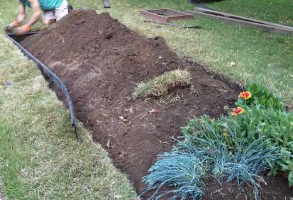 Под слоем снятого дерна землю нужно взрыхлить. Обычно нижний слой земли достаточно приемлем для использования под посадку. Но если и нижний слой очень плотный, слежавшийся и весь пронизан корнями сорняков, его нужно хорошенько обработать мотыгой.