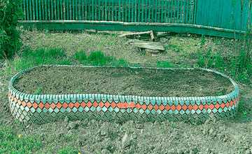 ΠΡΠ»ΠΈ Π²Π°ΠΌ Π½ΡΠ°Π²ΡΡΡΡ ΠΊΠ»ΡΠΌΠ±Ρ ΠΏΡΠ°Π²ΠΈΠ»ΡΠ½ΠΎΠΉ ΡΠΎΡΠΌΡ, ΠΌΠΎΠΆΠ½ΠΎ ΡΠ΄Π΅Π»Π°ΡΡ ΠΈ ΡΠ°ΠΊΠΈΠ΅. ΠΠ°ΠΏΡΠΈΠΌΠ΅Ρ, ΡΠ»ΠΎΠΆΠΈΠ² ΠΈΠ· ΡΠΈΠ½ ΠΊΠ»ΡΠΌΠ±Ρ Π² Π²ΠΈΠ΄Π΅ ΡΠΎΠΌΠ°ΡΠΊΠΈ. Π‘Π½Π°ΡΠ°Π»Π° Π²ΡΠΊΠ»Π°Π΄ΡΠ²Π°ΡΡ ΠΈ ΡΠΊΡΠ΅ΠΏΠ»ΡΡΡ ΠΌΠ΅ΠΆΠ΄Ρ ΡΠΎΠ±ΠΎΠΉ ΡΠΈΠ½Ρ Π² Π½ΠΈΠΆΠ½Π΅ΠΌ ΡΡΡΡΠ΅. ΠΠ°ΠΏΠΎΠ»Π½ΡΡΡ Π·Π΅ΠΌΠ»Π΅ΠΉ ΡΠ΅ΡΠ΅Π΄ΠΈΠ½Ρ ΡΠΈΠ½, Π° ΡΠ°ΠΊΠΆΠ΅ ΡΠ²ΠΎΠ±ΠΎΠ΄Π½ΠΎΠ΅ ΠΏΡΠΎΡΡΡΠ°Π½ΡΡΠ²ΠΎ Π²Π½ΡΡΡΠΈ ΠΊΡΡΠ³Π°. Π’ΡΠ΄Π° Π΄Π»Ρ Π»ΡΡΡΠ΅Π³ΠΎ Π΄ΡΠ΅Π½Π°ΠΆΠ° ΠΌΠΎΠΆΠ½ΠΎ ΡΠ»ΠΎΠΆΠΈΡΡ Π±ΠΈΡΡΠΉ ΠΊΠΈΡΠΏΠΈΡ ΠΈΠ»ΠΈ Π΄ΡΡΠ³ΠΎΠΉ ΡΡΡΠΎΠΈΡΠ΅Π»ΡΠ½ΡΠΉ ΠΌΡΡΠΎΡ, ΡΠ²Π΅ΡΡ Ρ Π½Π΅ΠΌΠ½ΠΎΠ³ΠΎ ΠΏΡΠΈΡΡΠΏΠ°ΡΡ Π·Π΅ΠΌΠ»Π΅ΠΉ ΠΈΒ ΡΡΡΠ°ΠΌΠ±ΠΎΠ²Π°ΡΡ. ΠΠ° ΠΏΠΎΠ΄Π³ΠΎΡΠΎΠ²Π»Π΅Π½Π½ΡΡ ΠΏΠΎΠ²Π΅ΡΡ Π½ΠΎΡΡΡ,Β ΠΎΡΡΡΡΠΏΠΈΠ² ΠΎΡ ΠΊΡΠ°Ρ Π±ΠΎΠ»ΡΡΠ΅ ΡΠ΅ΠΌ Π½Π° ΠΏΠΎΠ»ΠΎΠ²ΠΈΠ½ΡΒ Π΄ΠΈΠ°ΠΌΠ΅ΡΡΠ° ΡΠΈΠ½Ρ,Β Π²ΡΠΊΠ»Π°Π΄ΡΠ²Π°ΡΡ Π²ΡΠΎΡΠΎΠΉ ΡΡΡΡ. ΠΡ ΡΠΎΠΆΠ΅ ΠΌΠ΅ΠΆΠ΄Ρ ΡΠΎΠ±ΠΎΠΉ ΡΠΊΡΠ΅ΠΏΠ»ΡΡΡ, ΡΠ΅ΡΠ΅Π΄ΠΈΠ½Ρ Π·Π°ΡΡΠΏΠ°ΡΡ Π³ΡΡΠ½ΡΠΎΠΌ, ΠΈ ΡΠ²Π΅ΡΡ Ρ Π²ΠΎΠ΄ΡΡΠΆΠ°ΡΡ ΡΠ΅ΡΠ΄ΡΠ΅Π²ΠΈΠ½Ρ. ΠΠ° ΡΠ°ΠΌΠΎΠΉ Π²Π΅ΡΡ ΡΡΠΊΠ΅ ΠΌΠΎΠΆΠ½ΠΎ ΠΏΠΎΡΠ°Π΄ΠΈΡΡ Π²ΡΡΠΎΠΊΠΎΡΠΎΡΠ»ΡΠ΅ ΡΠ²Π΅ΡΡ, Π° Π½Π° Π½ΠΈΠΆΠ½ΠΈΡ ΡΡΡΡΠ°Ρ β Π±ΠΎΡΠ΄ΡΡΠ½ΡΠ΅Β ΠΈΠ»ΠΈ Π½ΠΈΠ·ΠΊΠΎΡΠΎΡΠ»ΡΠ΅.