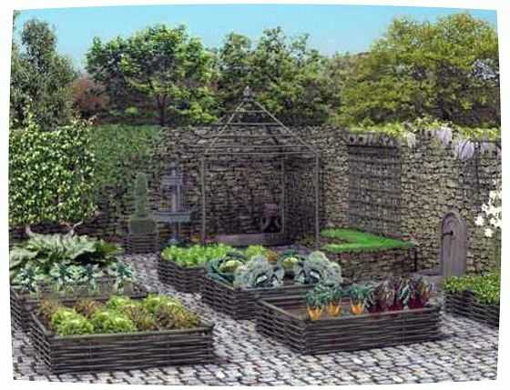Грядки можно сделать плетеными, а дорожки отсыпать мелким гравием