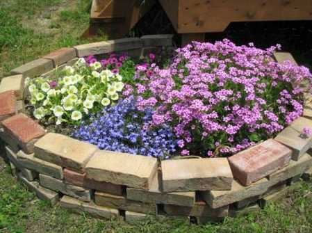 Обычные кирпичи, расположенные оригинальным образом, украсят любую грядку или клумбу
