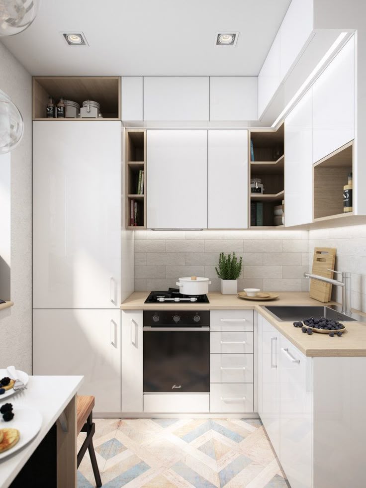 Интерьер должен быть оформлен в стиле минимализм. Простота — залог успеха создания идеального дизайна маленькой кухни.