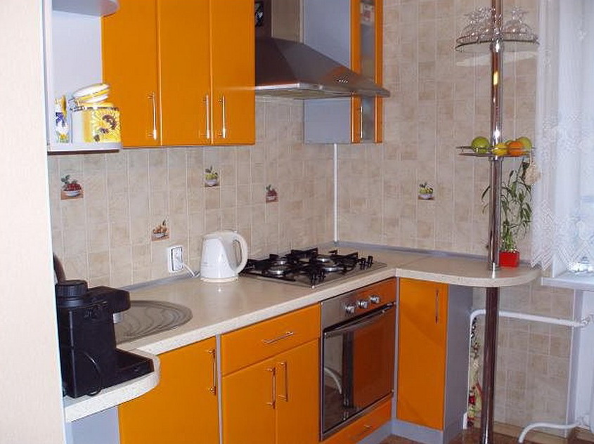 Для кухни, типа хрущевка, есть несколько приемов позволяющих получить максимум пользы от минимального пространства.