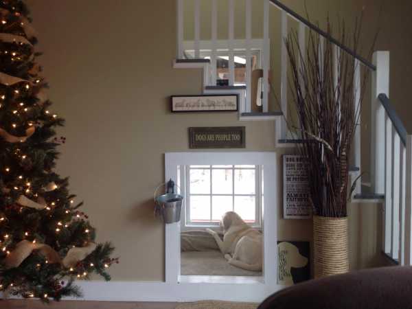 Очень часто пространство под лестницей не используется, но это идеальное место для спальни вашего питомца. Вы можете сделать его как большим, так и маленьким и персонализировать его в соответствии с вашими предпочтениями. У собаки наконец появится свое пространство, чтобы отдохнуть после долгой прогулки.