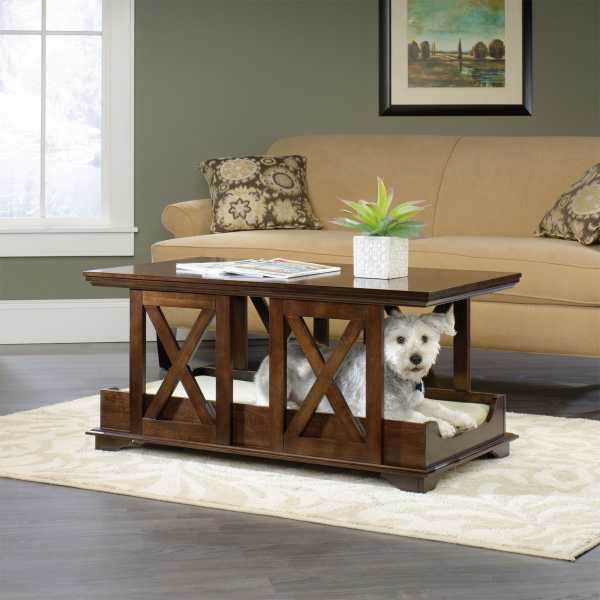 Современный стол может гордится своей универсальностью — использоваться как журнальный столик и уютное спальное место для питомца.