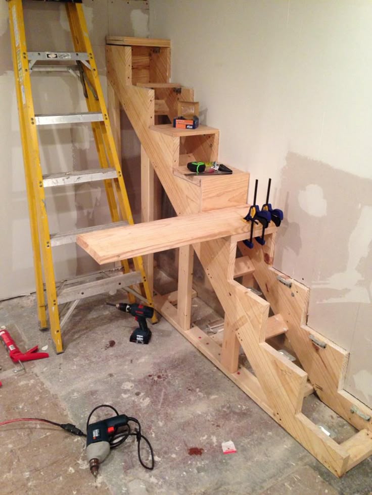 Зная устройство лестницы, ее легко можно смастерить самому. Во время работы над лестницей, средством передвижения между этажами может служить временная стремянка.