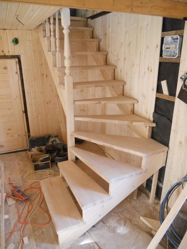 - На этом изготовление лестницы из дерева на второй этаж завершено.