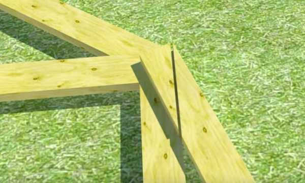 В следующем видео представлена пошаговая инструкция по сборке стропильной системы. В первую очередь нужно установить опорный брус необходимой длины с учетом свесов. Внимательно посмотрите, как необходимо соединять две части опорного бруса. Обратите внимание на расположение стыковочного бруска. Он должен быть находиться внутри дома.