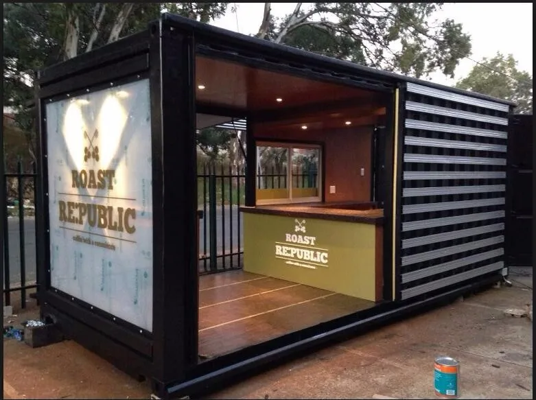 Современные возможности переоборудования контейнеров позволяют получить эстетически великолепный торговый павильон, оснащенный сверкающими стеклянными витринами, функциональным торговым оборудованием и оригинальными рекламными фишками. Превратить стандартный контейнер в запоминающийся и популярный торговый ларек или магазин просто, достаточно воспользоваться несколькими техниками переоборудования: