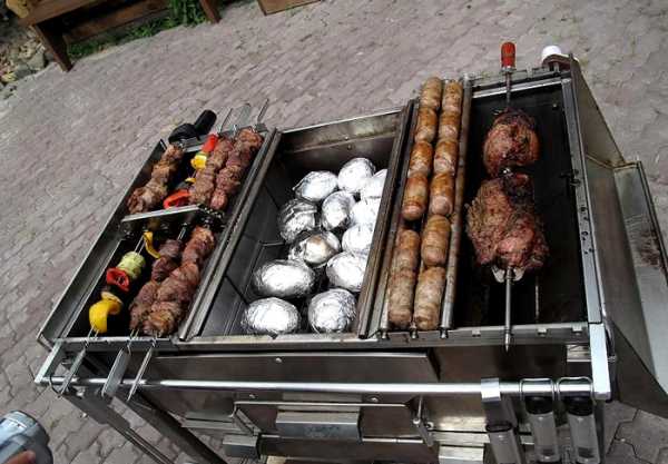 Π ΡΡΠΎΠΉ ΠΌΠΎΠ΄Π΅Π»ΠΈ ΠΏΡΠΎΠ΄ΡΠΊΡΡ, Π³ΠΎΡΠΎΠ²ΡΡΠΈΠ΅ΡΡ Π½Π° ΠΎΠ³Π½Π΅, Π±ΡΠ΄ΡΡ Π·Π°ΡΠΈΡΠ΅Π½Ρ ΠΎΡ Π²Π΅ΡΡΠ° Π·Π°Π΄Π½Π΅ΠΉ ΡΡΠ΅Π½ΠΊΠΎΠΉ Π±ΠΎΡΠΊΠΈ. ΠΠ° ΡΠΎΡΠΎ Ρ ΠΎΡΠΎΡΠΎ Π²ΠΈΠ΄Π½ΠΎ, ΠΊΠ°ΠΊ ΡΡΡΠ°Π½Π°Π²Π»ΠΈΠ²Π°ΡΡΡΡ ΡΠ΅ΡΠ΅ΡΠΊΠΈ Π΄Π»Ρ ΠΏΡΠΈΠ³ΠΎΡΠΎΠ²Π»Π΅Π½ΠΈΡ Π±Π°ΡΠ±Π΅ΠΊΡ.