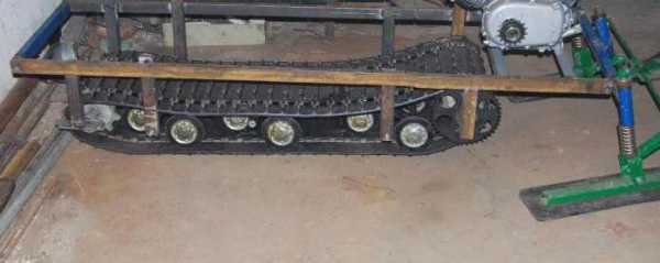 Гусеницы к снегоходу также можно изготовить самостоятельно. При этом можно использовать различные материалы: конвейерные ленты, мотоциклетные цепи, водопроводные трубы и др. Главное, изготовить их надежными, легкими и качественными, чтобы было хорошее сцепление траков с поверхностью.