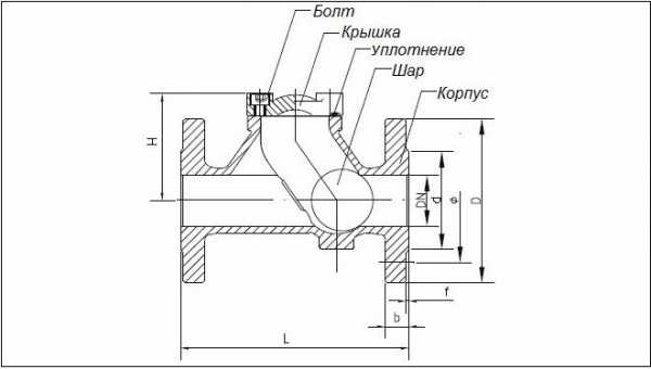 Конструкцию обратных клапанов вне зависимости от их типа составляют следующие элементы: