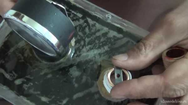 Сверху автор накручивает маленький кранчик, однако это не обязательно. Кранчик можно свободно заменить обычной гайкой, однако следует обратить внимание на то, чтобы диаметр верхнего отверстия гайки был меньше диаметра штуцера, чтобы зафиксировать железный прямоугольник.