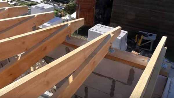 На количество бруса и размер его сечения влияет длина стропил на односкатной крыше. Также стоит учитывать, что чем тоньше брус, тем меньшую нагрузку он может вынести и поэтому стропила стоит устанавливать более плотно друг к другу.