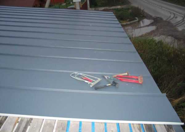 - Если угол ската маленький, то применяется наплавляемое покрытие, а если угол большой, то монтируют металлическую черепицу или шифер.