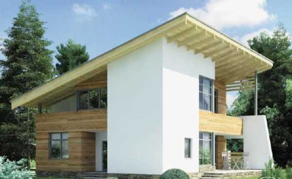 - Современный дизайн. Устройство односкатной крыши позволяет строить ее в несколько этажей, что открывает множество вариантов для создания запоминающегося экстерьера строения
