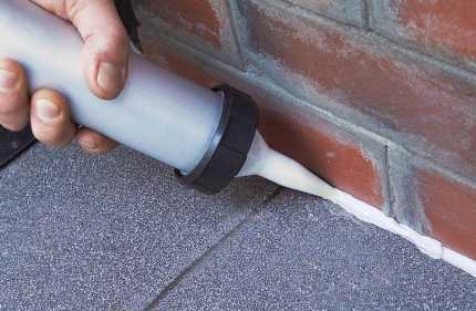 Сочленение с фундаментом можно создать и при помощи прутьев, которыми армировали отмостку. Это не даст щели увеличиваться. Любой материал сцепления нужно замаскировать. Для этого используют бордюры, отделочные элементы, откосы.