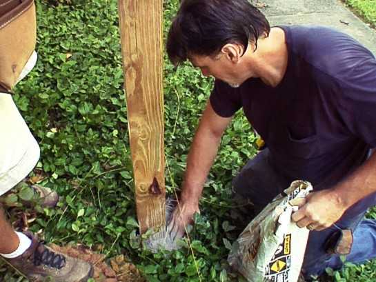 ΠΠ»Ρ ΡΠΎΠ³ΠΎ, ΡΡΠΎΠ±Ρ ΡΠ΄Π΅Π»Π°ΡΡ Π·Π°Π±ΠΎΡ ΠΈΠ· ΡΡΠ°ΠΊΠ΅ΡΠ½ΠΈΠΊΠ° ΡΠ²ΠΎΠΈΠΌΠΈ ΡΡΠΊΠ°ΠΌΠΈ, ΡΠ»Π΅Π΄ΡΠ΅Ρ Π½Π°ΡΠ°ΡΡ Ρ ΡΡΡΠ°Π½ΠΎΠ²ΠΊΠΈ ΠΎΠΏΠΎΡΠ½ΡΡ ΡΡΠΎΠ»Π±ΠΎΠ². Π Π·Π°Π²ΠΈΡΠΈΠΌΠΎΡΡΠΈ ΠΎΡ ΠΊΠ»ΠΈΠΌΠ°ΡΠΈΡΠ΅ΡΠΊΠΈΡ ΡΡΠ»ΠΎΠ²ΠΈΠΉ ΠΈ ΡΠΎΡΡΠ°Π²Π° Π³ΡΡΠ½ΡΠ°, ΠΈΡ ΠΏΡΠΈΡ ΠΎΠ΄ΠΈΡΡΡ Π²ΠΊΠ°ΠΏΡΠ²Π°ΡΡ Π½Π° Π³Π»ΡΠ±ΠΈΠ½Ρ Π΄ΠΎ 1,5 ΠΌ. Π―ΠΌΡ ΠΌΠΎΠΆΠ½ΠΎ ΡΠ΄Π΅Π»Π°ΡΡ Π±Π΅Π½Π·ΠΈΠ½ΠΎΠ²ΡΠΌ ΠΈΠ»ΠΈ ΡΡΡΠ½ΡΠΌ ΡΠ°Π΄ΠΎΠ²ΡΠΌ Π±ΡΡΠΎΠΌ. ΠΠ»Ρ Π½Π°Π΄Π΅ΠΆΠ½ΠΎΡΡΠΈ ΠΈ ΡΡΡΠΎΠΉΡΠΈΠ²ΠΎΡΡΠΈ ΡΡΠΎΠ»Π±Ρ Π·Π°Π±ΡΡΠΎΠ²ΡΠ²Π°ΡΡ ΡΠ΅Π±Π½Π΅ΠΌ ΠΈ Π·Π°Π»ΠΈΠ²Π°ΡΡ Π±Π΅ΡΠΎΠ½ΠΎΠΌ. ΠΠ΅ΡΡ ΡΡΠΊΠΈ ΡΡΠΎΠ»Π±ΠΎΠ² Π·Π°ΠΊΡΡΠ²Π°ΡΡ ΠΎΡ Π²Π»Π°Π³ΠΈ ΠΏΠΎΠ΄Ρ ΠΎΠ΄ΡΡΠΈΠΌΠΈ ΠΊΠΎΠ»ΠΏΠ°ΠΊΠ°ΠΌΠΈ ΠΈΠ»ΠΈ Π·Π°Π³Π»ΡΡΠΊΠ°ΠΌΠΈ.