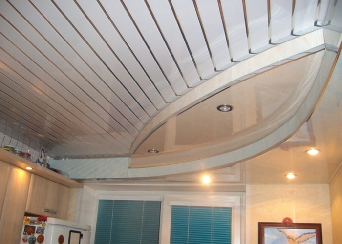 Чтобы оценить, как может выглядеть потолок из ПВХ панелей, собранный своими руками, можно посмотреть на несколько фото, представленных ниже. Там показаны основные помещения, в которых такие покрытия смотрятся наиболее органично и где все их положительные качества используются максимально эффективно.