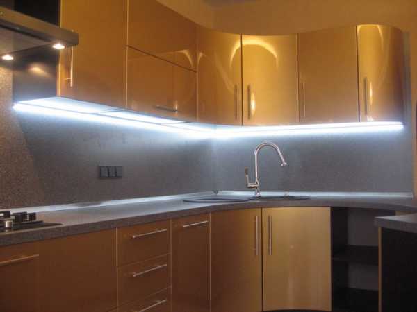 Светодиодная подсветка наиболее экономичный и простой вариант дополнительного освещения рабочей зоны на кухне.