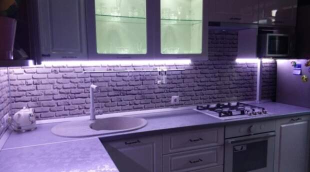 Как сделать подсветку на кухне под шкафчиками светодиодной лентой: инструкция