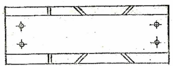 При хорошем глазомере и точности действия рук можно использовать самодельный шаблон, напоминающий имитацию стусла. Для этого берут тонкую дощечку или плотную фанеру и чертят макет в виде горизонтального прямоугольника. С помощью транспортира отмечают 45° на правой и левой стороне прямоугольника. Чертят линии, соединяющие противоположные края.