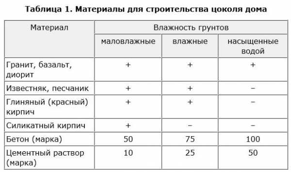 Если стены в доме сделаны из кирпича, то для цоколя лучше всего выбрать блоки из бетона, железобетон, полнотелый кирпич и т. д.