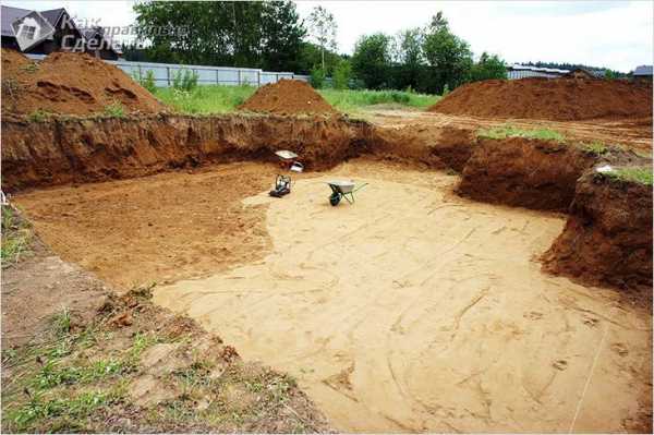 - Согласно чертежам и пометкам вырывается котлован, который не должен быть глубже подземного фундаментного слоя. Во избежание чрезмерной глубины или неровностей на поверхности почвы следует выкапывать последние полметра грунта с помощью лопат.
