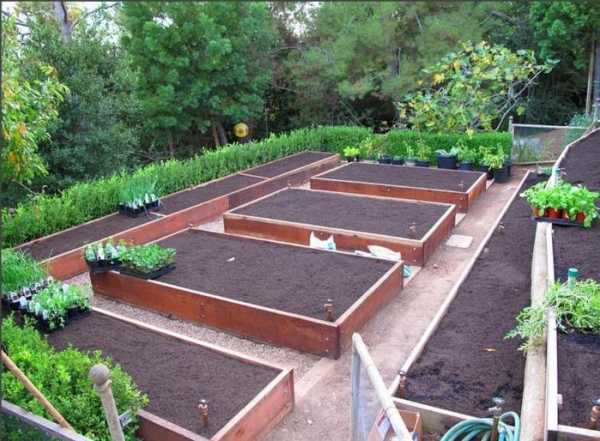 При установке нескольких коробов – грядок на своем участке, не экономьте на междурядьях- оставляйте пространство между ними до 0,9м. Конечно, по весне такой огород будет казаться не привычно пустым, но когда растения начнут развиваться, вы оцените преимущества такого расположения. На узких грядках с широкими междурядьями растения хорошо освещены, им хватает места для развития, удобно к ним подходить, при необходимости, легко провезти тачку. Междурядья можно засеять газонной травой или сделать бетонные дорожки.