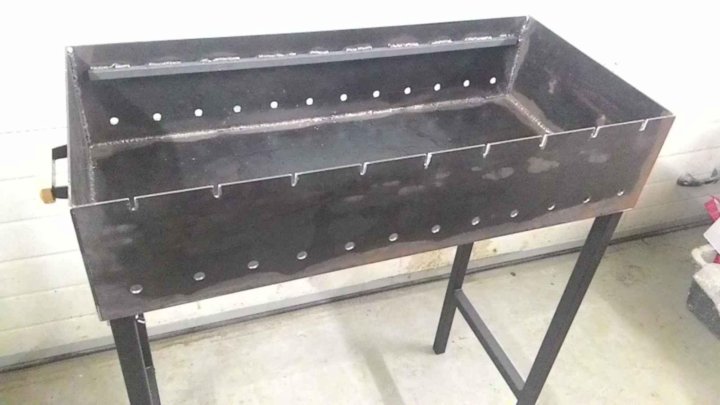 Еще один распространенный вид самодельного мангала представляет собой сварную конструкцию из листового металла и уголка. Алгоритм изготовления выглядит так: