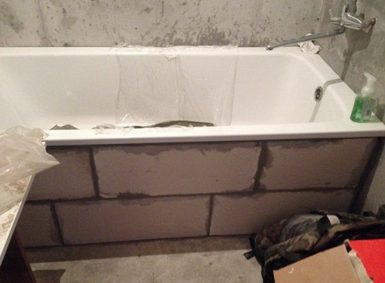 Начиная работу, нужно разметить будущий экран таким образом, чтобы кромка ванны оказалась вровень с его стенкой.