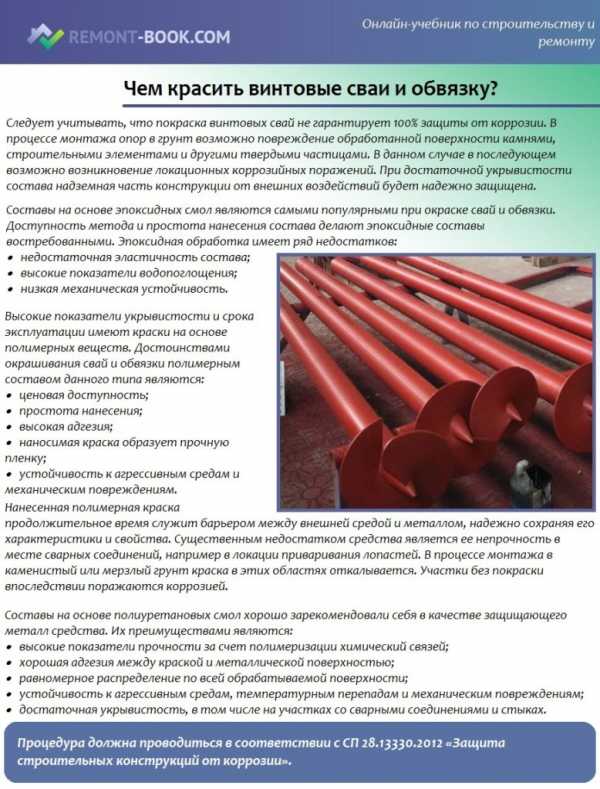 При необходимости покройте поверхности металла битумными мастиками. Как показывает практика, при определенном опыте и правильной организации труда на изготовление одной сваи требуется примерно двадцать минут.